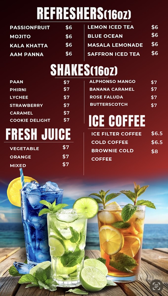 For a sweet treat, their selection of shakes is not to be missed. Sip on the luscious Brownie Shake or the delightful Alphonso Mango for a blissful blend of flavors that recall childhood delights. And of course, there’s the chai. With options like Cardamom Ginger Chai and Paan Chai, you're invited to explore the warm, spiced notes that make chai such a beloved beverage.